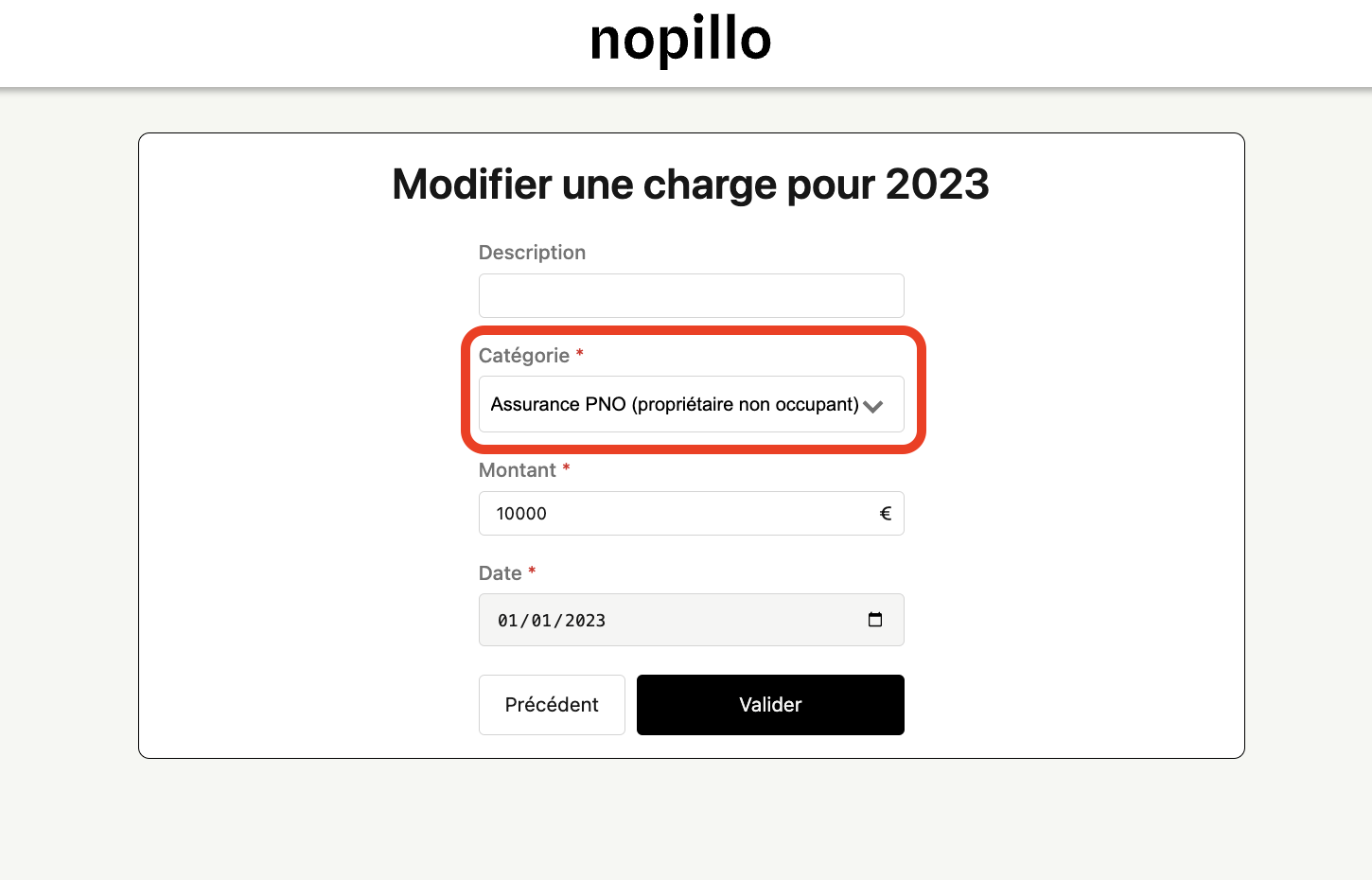 - Modifiez la valeur de votre assurance PNO par la valeur correcte et validez