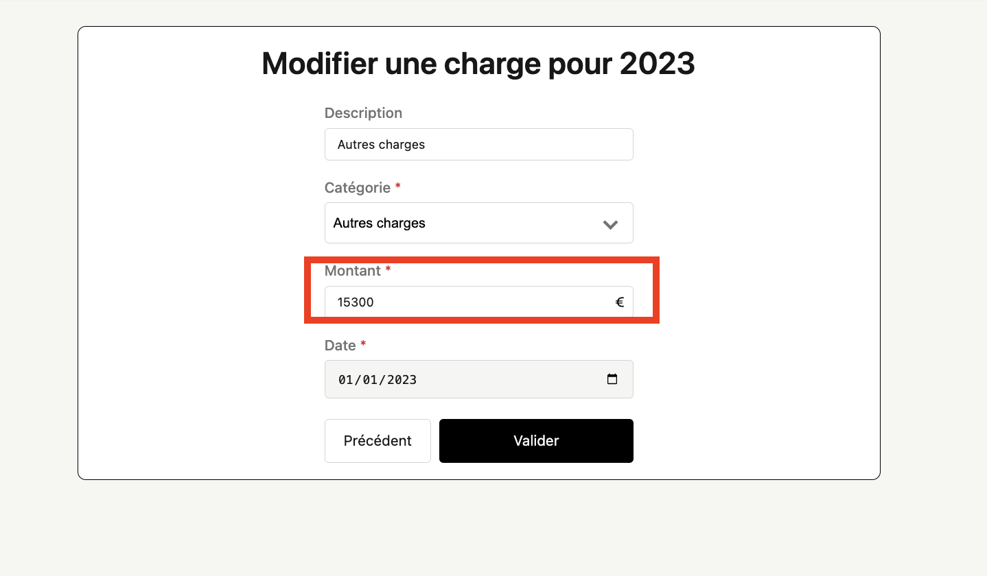 - Modifiez la valeur de vos autres charges et validez