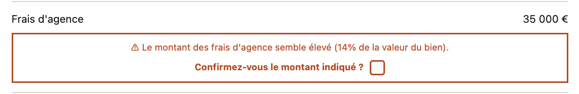 Ce message se déclenche automatiquement lorsque le montant des frais d'agence excède 12% de la valeur de votre bien.