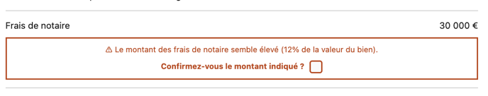 Ce message se déclenche automatiquement lorsque le montant des frais de notaire excède 10% de la valeur de votre bien.