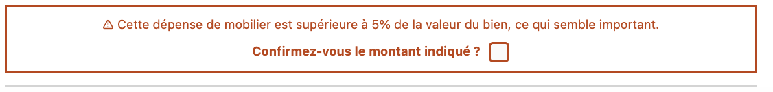 Dans le cas de la valeur des meubles, vous pouvez retrouver les messages d'erreur suivants :