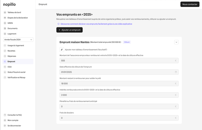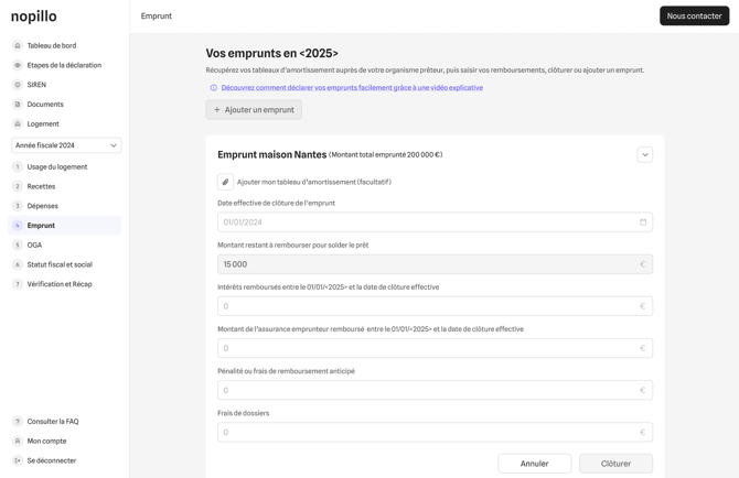 Vous avez déjà déclaré une ou plusieurs années et vous souhaitez clÎturer un emprunt car :