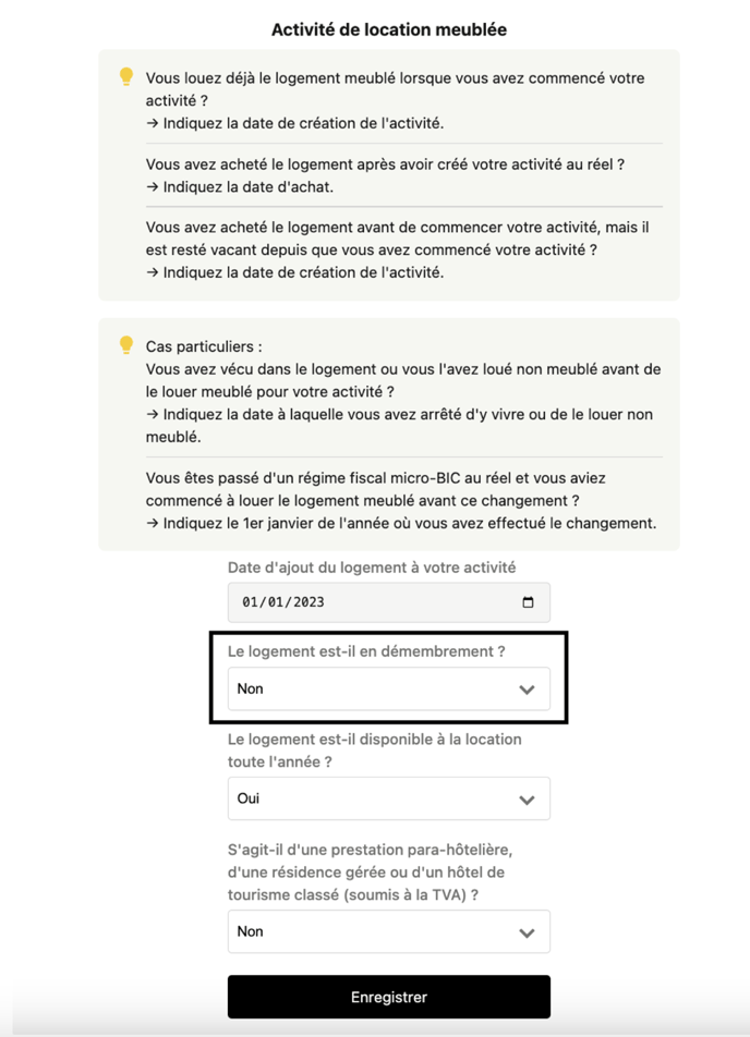 Etape 2 : Rendez-vous ensuite dans la section ‘’Activité de location meublé’’.