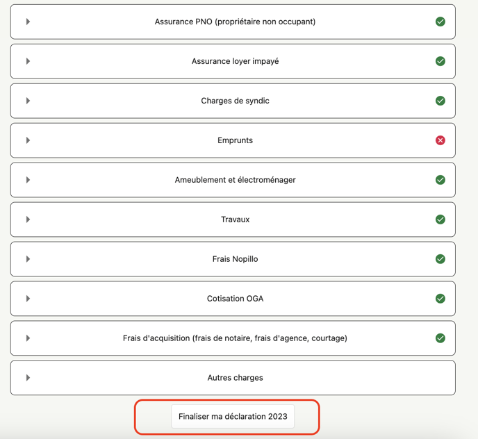 Une fois votre déclaration fiscale finalisée en appuyant sur le bouton du même nom sur votre espace Nopillo (cf capture d'écran ci-dessous), voici ce qu'il se passe :